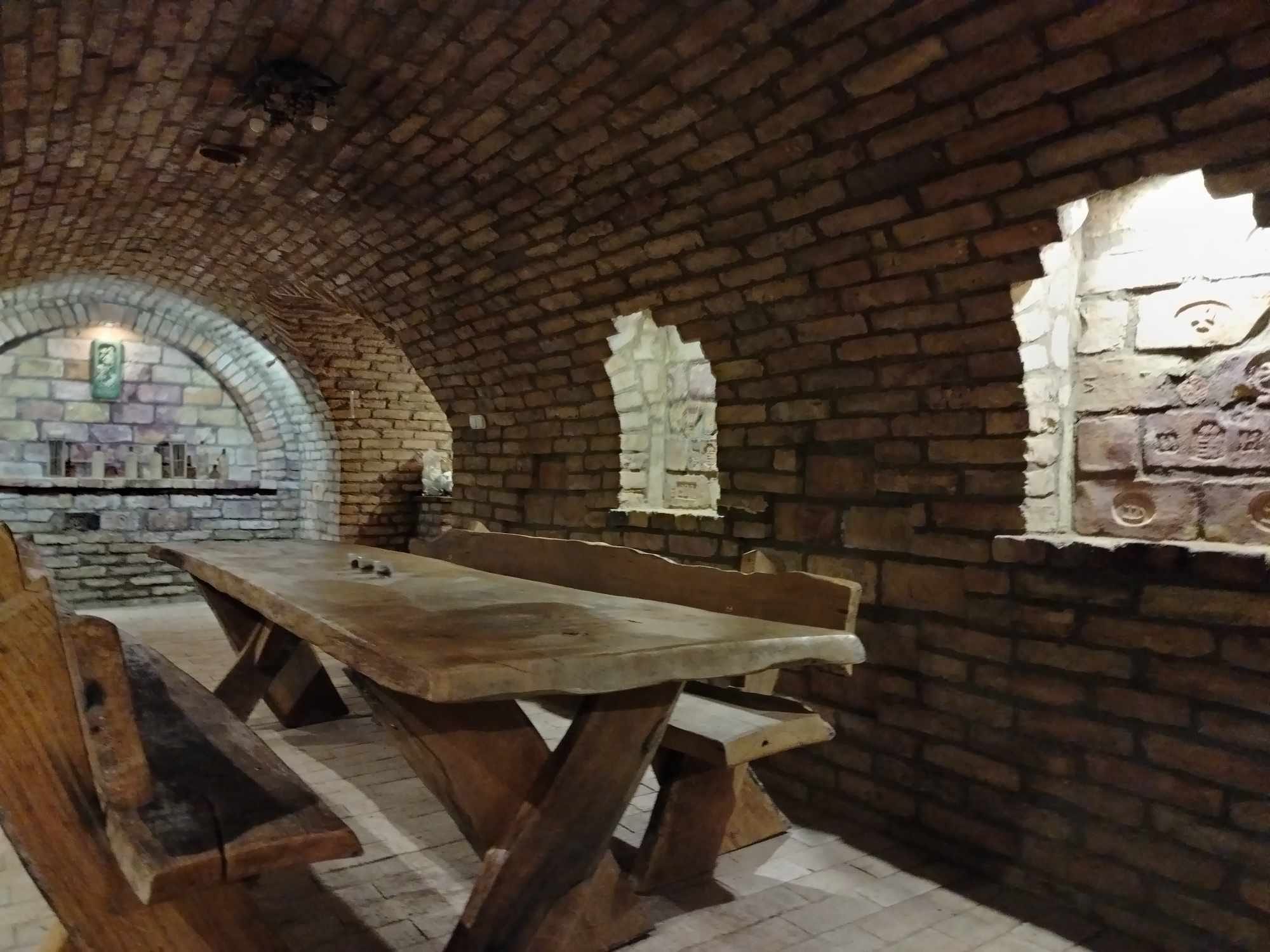 A nappaliból lehet lemenni a 40m2-es boros pincébe, ahol asztal padok és egy kis bekészített bor vár benneteket, itt a hőmérséklet télen nyáron 11-12°C.